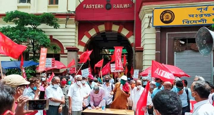 বৃহস্পতিবার ফেয়ারলী প্লেসে পূর্ব রেলের সদর দপ্তরের সামনে মোদি সরকারের জমানায় রেল ব্যবস্থা কে পুরোপুরি কর্পোরেটদের হাতে তুলে দেওয়ার প্রচেষ্টার