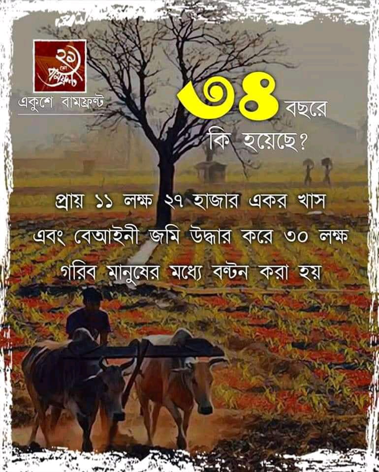 নজর এড়িয়ে যাবে না করোরই যে দিল্লি ঘিরে বসে থাকা কৃষক আন্দোলনের অন্যতম দাবি বিদ্যুৎ আইনে কেন্দ্রের সংশোধনী বিল খারিজ করা। ১৯৯১ থেকে ধাপে ধাপে বিদ্যুৎ এবং জ্বালানির দামে সরকারি নিয়ন্ত্রণ তুলে দেওয়ার নীতি নেওয়া হয়। ১৯৯৭ থেকে ২০০৪ পর্যন্ত অটলবিহারী বাজপেয়ীর নেতৃত্বে বিজেপি’র নেতৃত্বাধীন জোট এনডিএ সরকার দেশ চালিয়েছে। সেই সরকারের শরিক ছিল তৃণমূল, অধুনা মুখ্যমন্ত্রী মন্ত্রিত্ব করেছেন। কিন্তু বাজারের ওপর দায়িত্ব ছেড়ে দেওয়ার মারাত্মক নীতির প্রতিবাদ করেননি কোনোদিন। এনডিএ সরকারের সময়েই শহরাঞ্চলে জমির ঊর্ধ্বসীমা আইন তুলে নেওয়া হয়। মূলত ফাটকা আবাসন ব্যবসায় মদত দেওয়াই ছিল লক্ষ্য। সেই নীতির শরিক তৃণমূলকে সামনে রেখে এরাজ্যে তথাকথিত জমির আন্দোলন চলেছে যার এক এবং একমাত্র লক্ষ্য ছিল বামফ্রন্ট সরকারকে উচ্ছেদ করা।