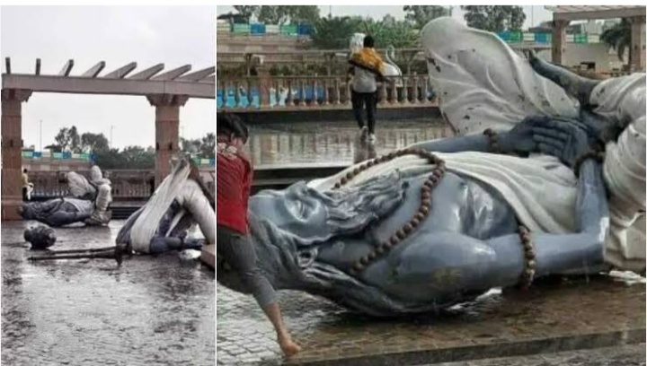 ৮৫০ কোটি টাকার প্রকল্পের লক্ষ্য জীর্ণ মহাকাল মন্দির ঘিরে পরিকাঠামোর উন্নয়ন। পাঁচ মাস পুরো পার হতে পারল না। গত মার্চে এক ঝোড়ো হাওয়ার দিনে ভেঙে গেল সেই প্রকল্পের অংশ। মহাকাল লোক করিডোরের উপর বসানো হয়েছিল সাতটি মূর্তি — ‘সপ্তর্ষি’র। সেই সাত ঋষির ছটি মূর্তিই উপড়ে পড়েগেছিল। ভেঙে গেছে কারও হাত, কার মুখ, কারও পা। ১০ থেকে ২৫ ফুটের মূর্তিগুলির তৈরি এবং অন্যান্য নির্মাণ কাজে ব্যাপক লুট হয়ে বলে অভিযোগ। ৮৫০ কোটি টাকার একাংশ বিজেপি-র নেতাদের পকেটে ঢুকেছে বলেই অভিযোগ। নির্মাণকারী সংস্থা আবার মূর্তিগুলি গড়ে দেবে বলেছিল। কিন্তু নির্বাচনের অপেক্ষায় থাকা মধ্যপ্রদেশে এই কান্ড বেশ সোরগোল ফেলেছে।