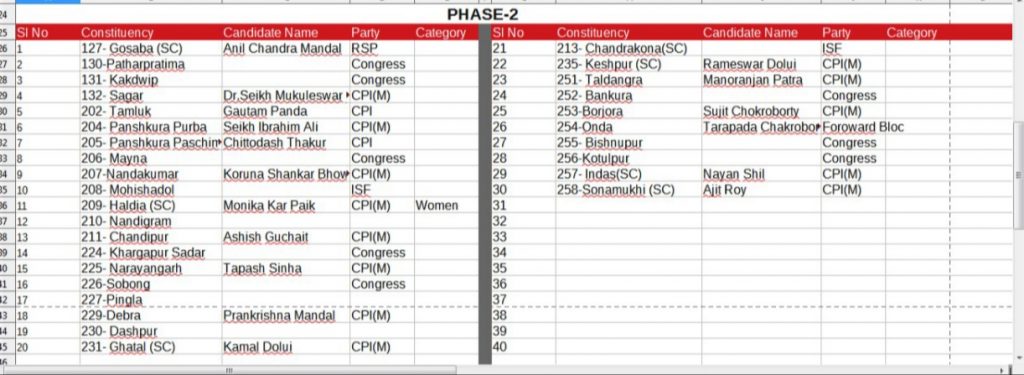 ৫ মার্চ বাম, কংগ্রেস, আইএসএফ – সংযুক্ত মোর্চার ঘোষিত তালিকা (২য় দফার নির্বাচন)