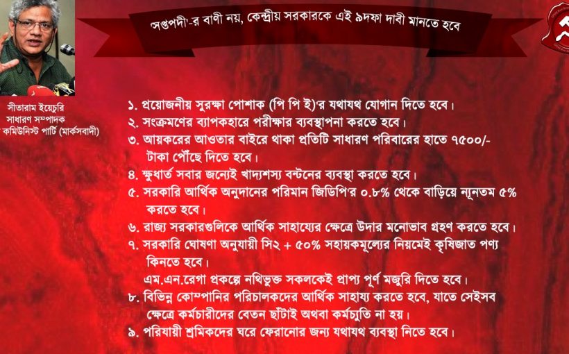 প্রধানমন্ত্রীর ভাষণের সাতটি প্রদীপের নিচেই অন্ধকার, প্রদীপের নিচে, আলো জ্বালাতে CPI(M) পার্টির নয় দফা…