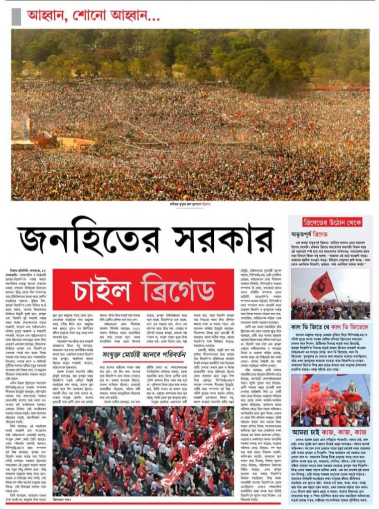 এতো মহা মুস্কিলে পড়া গেল। লোক জুটে গেল , মাঠ ভরে গেল।বিরিয়ানি, মায় ডিম-ভাত খাওয়ানোর গল্প বের করা গেলনা। চিড়িয়াখানা-ভিক্টোরিয়া দেখতে ক’লকাতা আসার গল্পও নেই। পাকাচুলে ভর্তি ব্রিগেডের সবুজ ঘাসকে সাদা দেখানো – সেটাও খাওয়ানো যাচ্ছে না। ছবি অন্য কথা বলে দিচ্ছে।