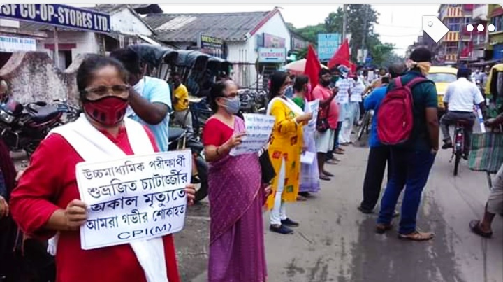উচ্চমাধ্যমিক পরীক্ষার্থী শুভ্রজিতের মৃত্যু ও গোটা রাজ্যের বেহাল স্বাস্থ্য ব্যবস্থার প্রতিবাদে বিক্ষোভ গোটা রাজ্যের সাথে সাথে বিক্ষোভ দেখায় উত্তর ব্যারাকপুর এরিয়া কমিটির আহ্বানে সিপিআই(এম) এর নেতৃত্ব ও কর্মীরা। প্রতিবাদে সামিল ছিলেন সিপিআই(এম) রাজ্য কমিটির সদস্য গার্গী চ্যাটার্জী।
