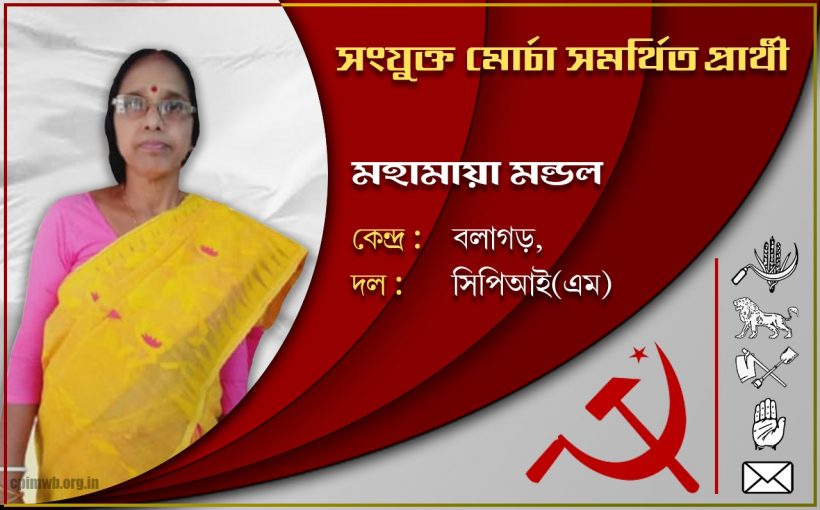 ২০২১ সালে পশ্চিমবঙ্গের বিধানসভা নির্বাচনে সংযুক্ত মোর্চা (বাম, কংগ্রেস এবং ইন্ডিয়ান সেক্যুলার ফ্রন্ট) সমর্থিত সকল প্রার্থীকে বিপুল ভোটে জয়ী করুন। রাজ্যে সংযুক্ত মোর্চার গণতান্ত্রিক, ধর্মনিরপেক্ষ, জনহিতের সরকার গড়ে তুলুন