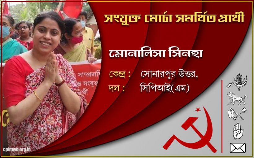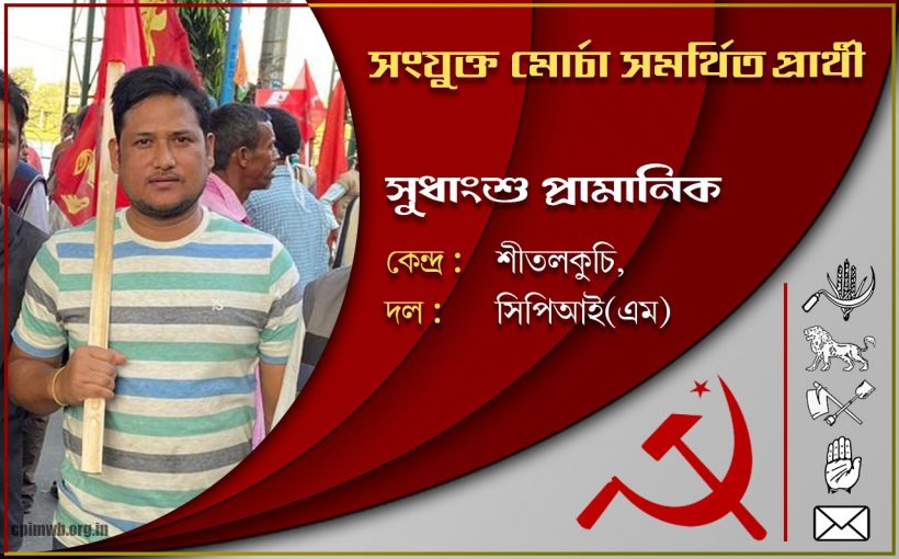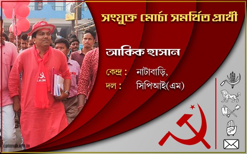 ২০২১ সালে পশ্চিমবঙ্গের বিধানসভা নির্বাচনে সংযুক্ত মোর্চা (বাম, কংগ্রেস এবং ইন্ডিয়ান সেক্যুলার ফ্রন্ট) সমর্থিত সকল প্রার্থীকে বিপুল ভোটে জয়ী করুন। রাজ্যে সংযুক্ত মোর্চার গণতান্ত্রিক, ধর্মনিরপেক্ষ, জনহিতের সরকার গড়ে তুলুন