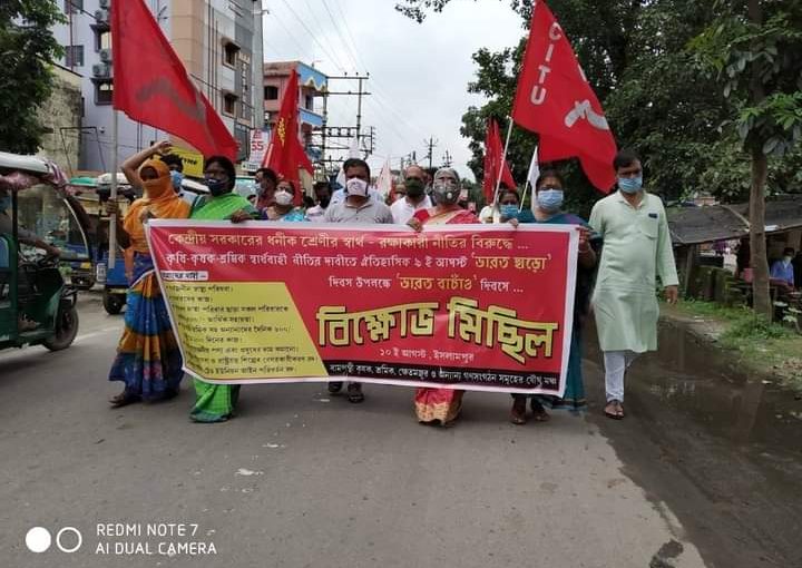 জাতীয় সম্পদ রক্ষা সহ শিল্প বাঁচাও,কৃষি বাঁচাও, কাজ বাঁচাও স্লোগান কে সামনে রেখে এবং পরিযায়ী শ্রমিক সহ সকলের কাজের নিশ্চয়তা কাজ হারানো পরিযায়ী শ্রমিকদের মাসিক ৭৫০০ টাকা সরকারি অনুদান সুনিশ্চিত করা , জরুরি চিকিৎসা পরিষেবা বজায় রাখা , লালারস পরীক্ষার সংখ্যা বাড়ানো প্রভৃতি দাবিকে সামনে রেখে কোচবিহার শহরে মিছিল হয়। এই সমগ্র কর্মসূচির নেতৃত্ব দেন শ্রমিক নেতা তারিণী রায় । ট্রেড ইউনিয়ন ও ফেডারেশন সমূহের আহ্বানে 'ভারত ছাড়ো' আন্দোলন ছড়িয়ে দিতে এদিন দিনহাটা চৌপথি ,বামনহাট, ওকরাবাড়ী তে বিক্ষোভ ও পথসভা হয়।